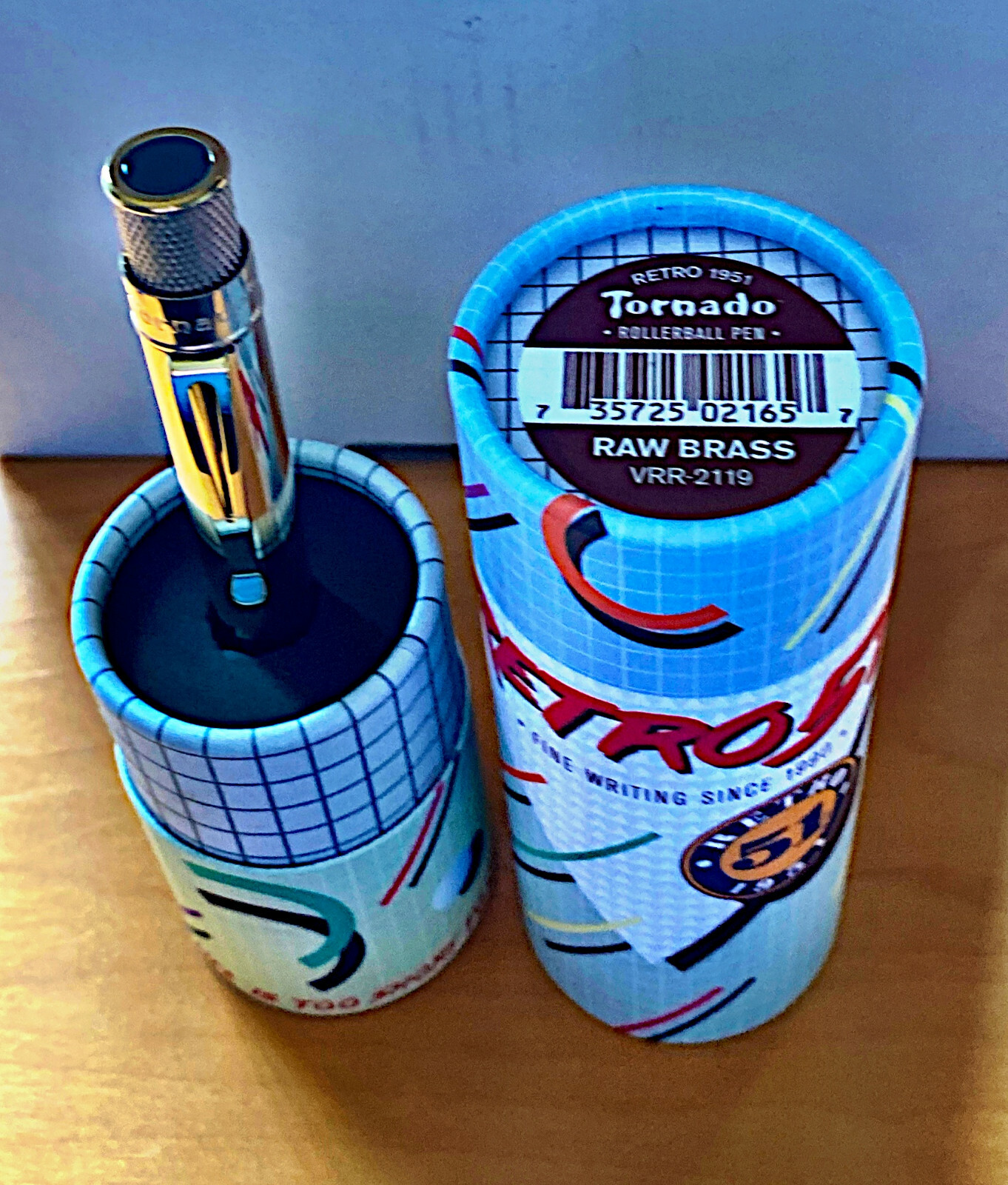 The Retro 51 Tornado Raw Brass rollerball pen is a heavy metal pen that will age well with use. The uncoated brass finish will react to your usage and the surrounding environment, developing a patina over time. The pen will truly be unique to you, becoming a one-of-a-kind heirloom piece. Custom matching tube packaging that can be used as pen stand.